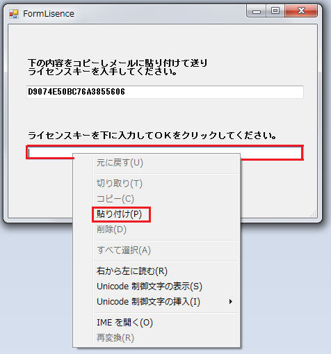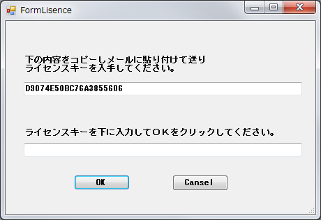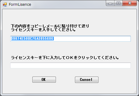 こちらでライセンスキーを作成しメールで送り返します。送り返されたライセンスキーをマウスでなぞって選択し